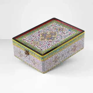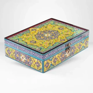 جعبه نفیس رواق هنر، نمونهای از تولیدات با کیفیت و طراحی ساده و مینیمال هستند که با دقت و مهارت بالا توسط هنرمندان اصفهانی ساخته میشوند. این جعبهها با استفاده از چوبهای مرغوب و تکنیکهای خاص تولید میشوند و به دلیل طراحی ساده و شیک خود، مورد توجه بسیاری از علاقهمندان به هنرهای دستی قرار گرفتهاند.